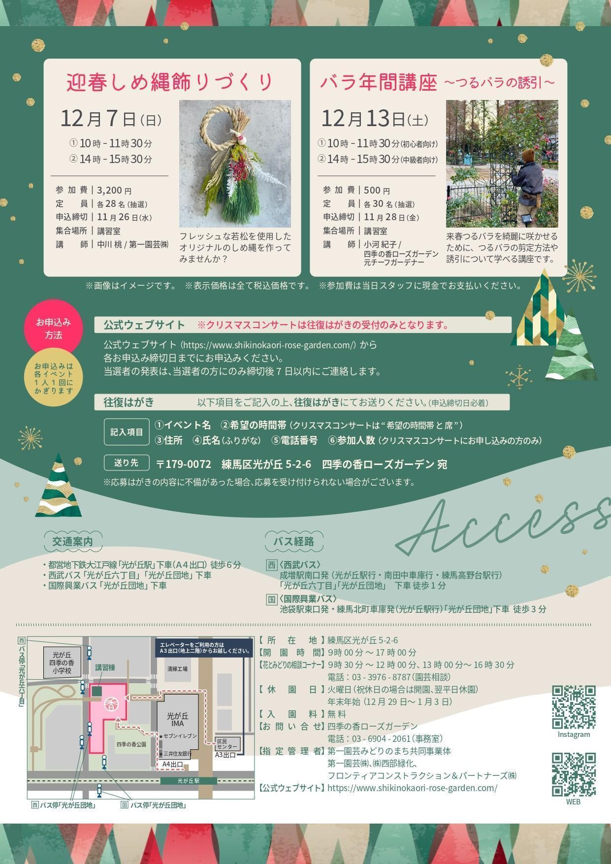 | 備考 | ※クリスマスコンサートは、往復はがきによる事前申込制です。 詳細は、チラシ又は関連URLをご確認ください。 |