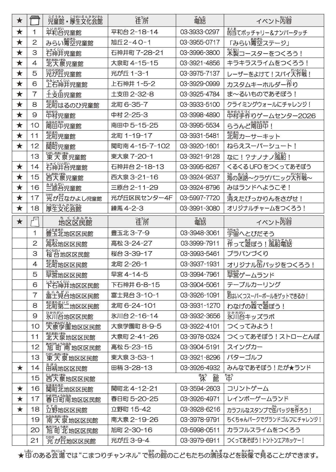 場所 練馬区内の児童館、厚生文化会館、地区区民館